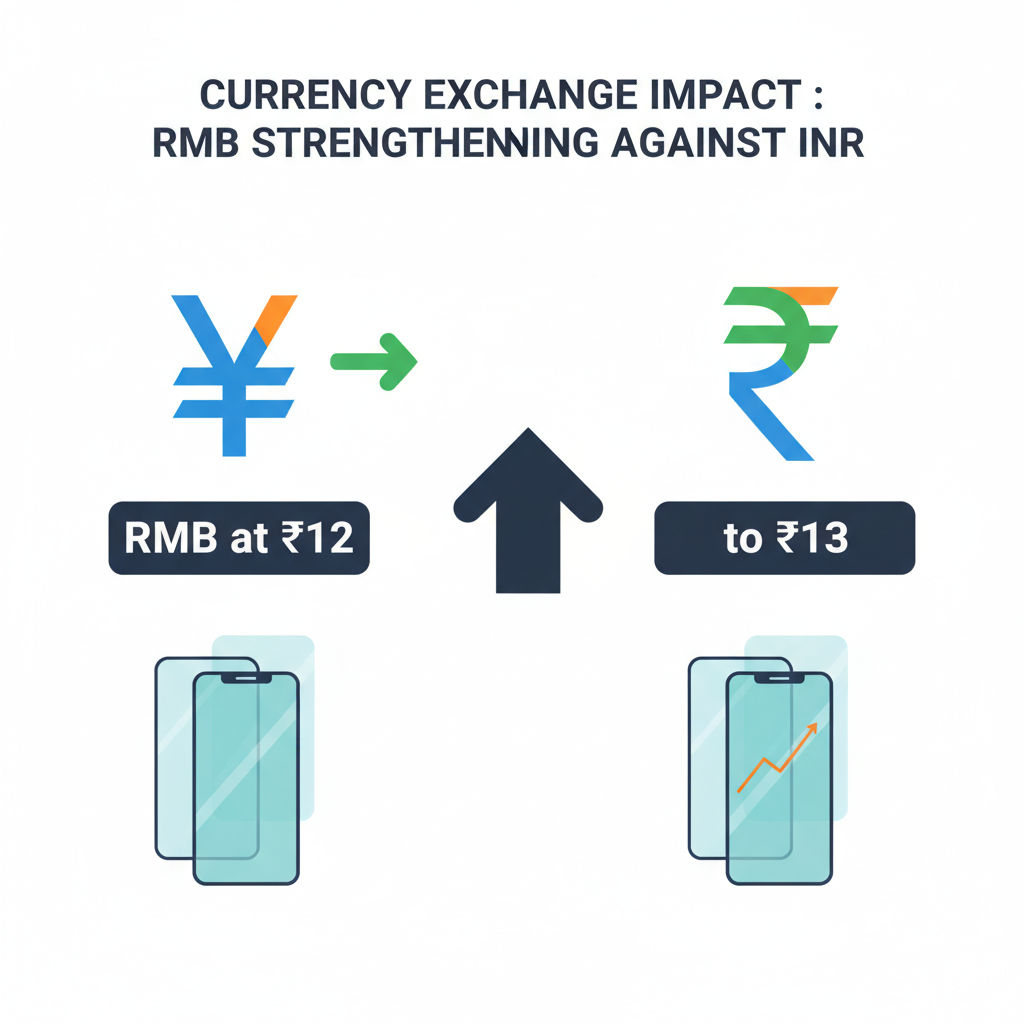 Since most tempered glass is imported from China, the increase in RMB exchange rate directly raises landed costs. Even a ₹1 jump has a major impact when dealing in bulk shipments.