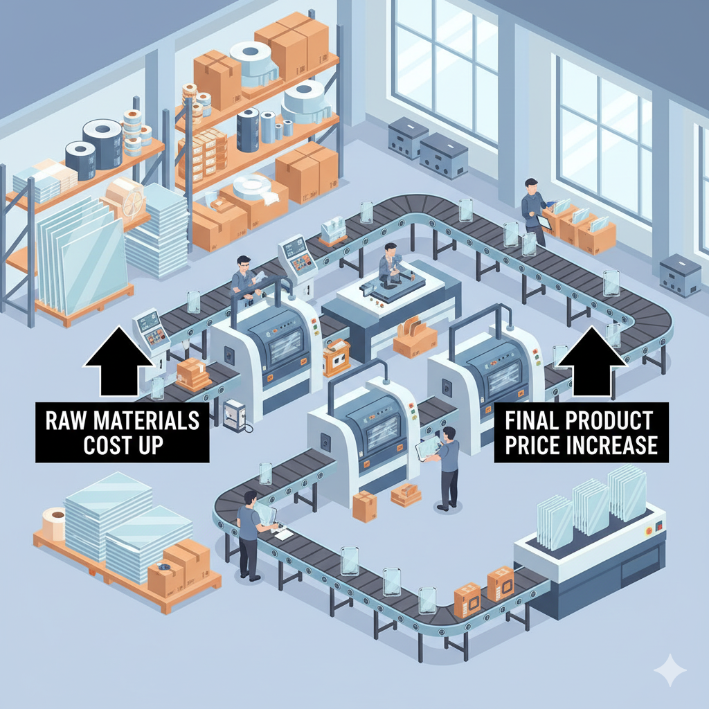 Core materials like glass sheets, adhesives, protective coatings, and packaging have become more expensive. Add higher shipping charges, and total manufacturing cost has risen sharply.